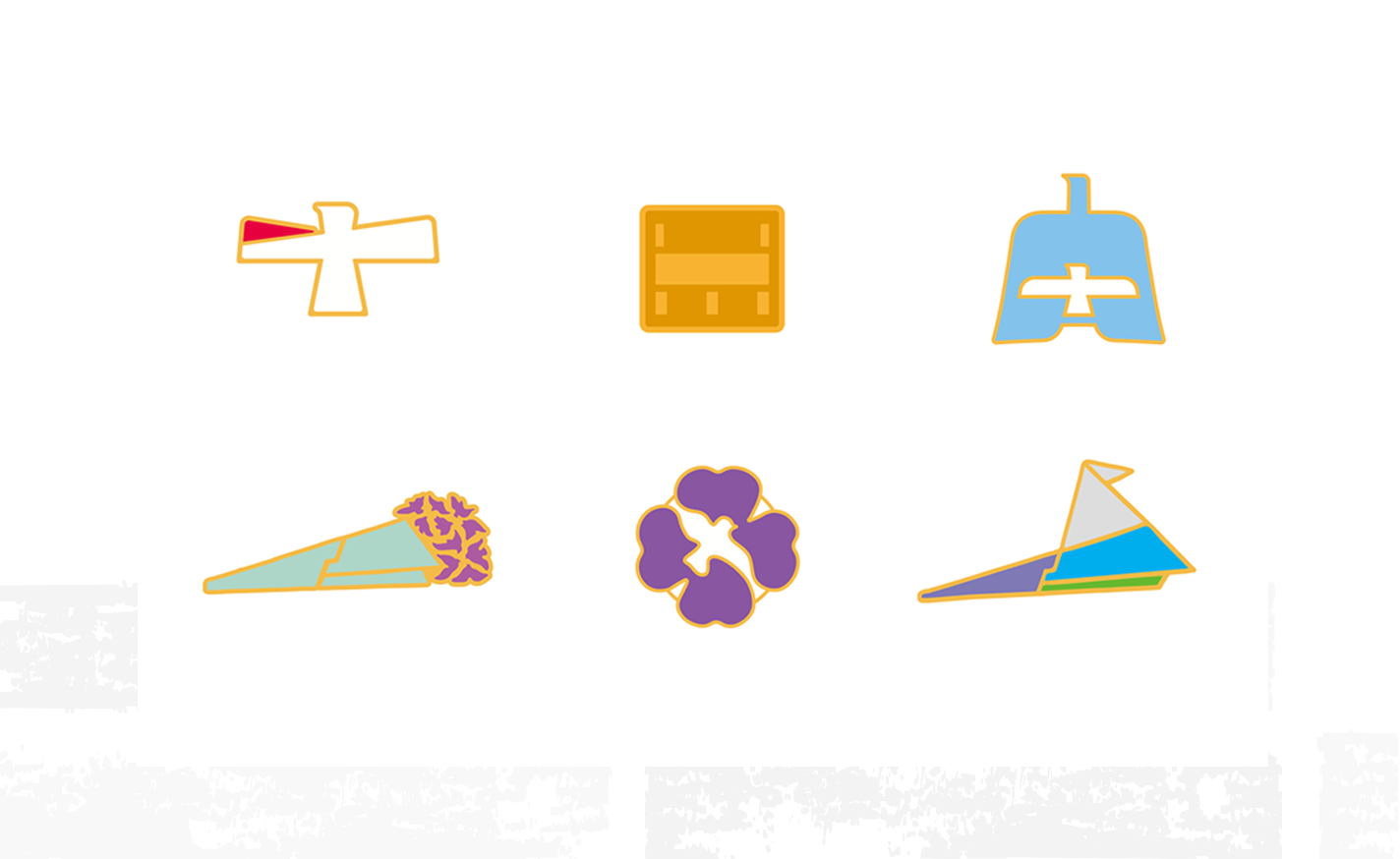 以纪念馆馆内建筑、雕塑为设计元素,对建筑造型、和平大钟、紫金草、和平鸽等进行再创作,以伤痕、记忆、和平、未来为主题,分别设计了折翼的和平鸽、纪念馆馆标、和平钟、纪念花束、紫金草以及千纸鹤6枚徽章,和平纪念徽章套装寄托了中日两国爱好和平人民的共同祈愿。