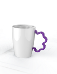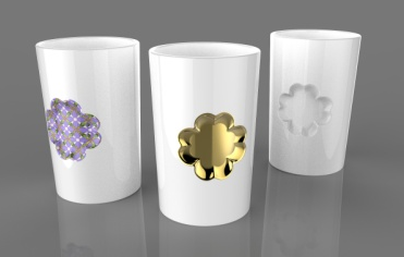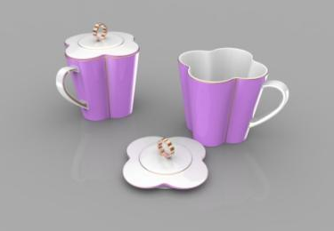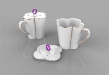 运用“和平之花”紫金草作为设计元素,构成图案,采用骨瓷、花纸、描金、浮雕等工艺制作。