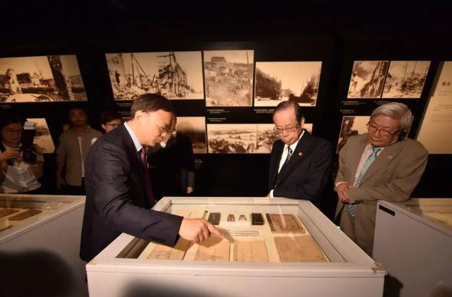During the visit, Zhang Jianjun gave a detailed introduction of the fall of Nanjing City, the process of the tragic massacre, as well as the efforts made by many Japanese friends to remember the history and realize the reconciliation between the hearts and minds of people in both countries. Fukuda praised the concept of exhibition in the Memorial Hall, saying “It is a very good memorial, where I can feel its great efforts to show the history through detailed historical data. Many data have not even been made public in Japan, which are worthy of attention for Japanese people”.