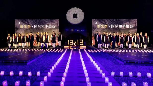 At 6:30 p.m., the "Candlelight Vigil • International Peace Rally " was held in the Memorial Hall. Chinese and foreign people wore plain clothes and held white candles online and offline to mourn for the victims of the Nanjing Massacre and pray for permanent peace in the world.