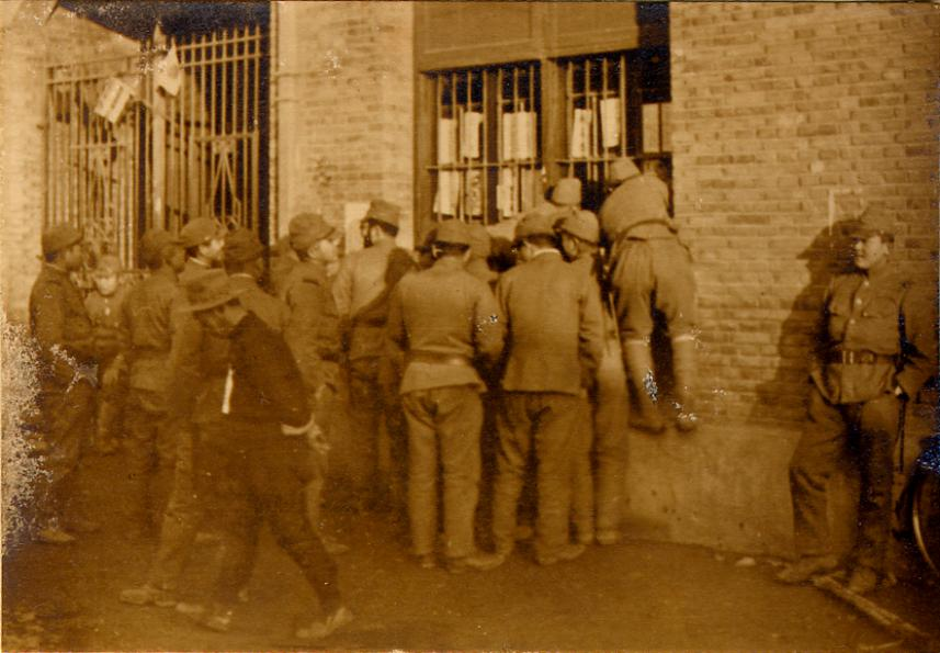Japanese soldiers standing in front of a “Comfort Station” in Nanjing in January (lunar month) 1938, from Japanese historian Hora Tomio , Sino-Japanese War-Commemorative Photo Collection of the staff of the Shanghai Dispatch Army