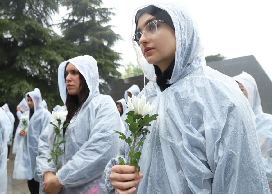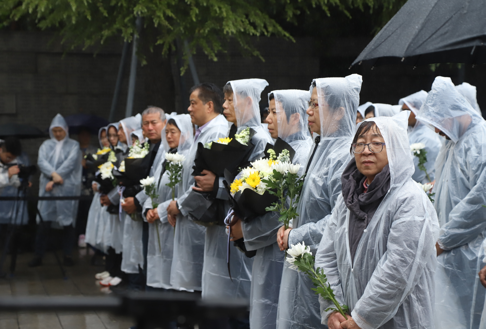On April 4, the Memorial Hall held a Tomb-Sweeping Memorial ceremony in memory of Chinese people killed in the Nanjing Massacre in front of the Wall of Tears. The representatives from the families of the Nanjing Massacre survivors and families of the Nanjing Massacre victims attended the ceremony to mourn their loved ones who died in the Nanjing Massacre 86 years ago. Some Chinese and foreign students also attended the ceremony.