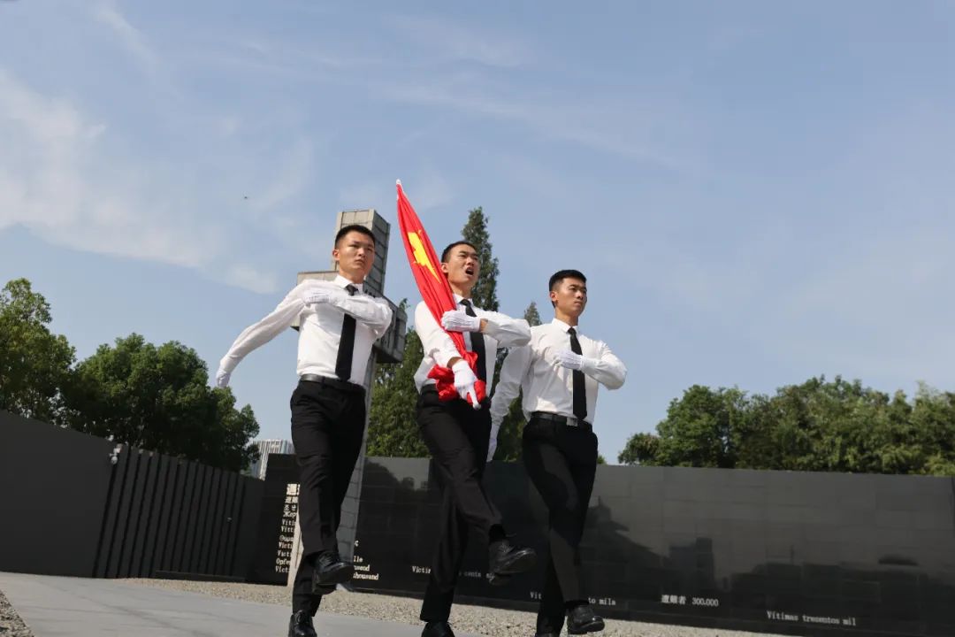 At 9:18 am on September 18, the Memorial Hall held the ceremony of raising the national flag and singing the national anthem at the Public Memorial Square to commemorate the 92nd anniversary of the September 18 Incident that marked the start of Japan’s invasion of China. Some descendants of Nanjing Massacre survivors, teenagers, military officers and soldiers, and Memorial Hall staff members attended the ceremony. The attendees stood facing the national flag to express their reverence, with those in hat taking off their hats, and looked up in a salute to the flag while the Young Pioneers saluted the flag in their own way. The attendees also sang the national anthem together.