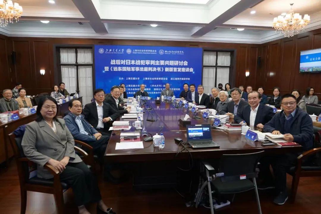 From November 11 to 12, 2023, on the occasion of the anniversary, a symposium on main issues in the trials of Japanese war criminals after World War II was held in Shanghai. The symposium also witnessed the launch of the newly translated Judgment of the International Military Tribunal for the Far East. The event was jointly hosted by Shanghai Jiao Tong University, Shanghai Federation of Social Science Associations, and Zhejiang Yuexiu University; and jointly organized by Shanghai Jiao Tong University Press, Academic Monthly, The Journal of Studies of China’s Resistance War Against Japan editorial office, Institute of National Heritage & International Peace, and Shanghai Jiao Tong University Research Institute of War Crimes Trials and World Peace. The experts at the symposium discussed topics from the historical contributions of the Tokyo Trial, and main issues in the trials of Japanese war criminals after World War II, to the collection of historical materials during the Tokyo Trial.