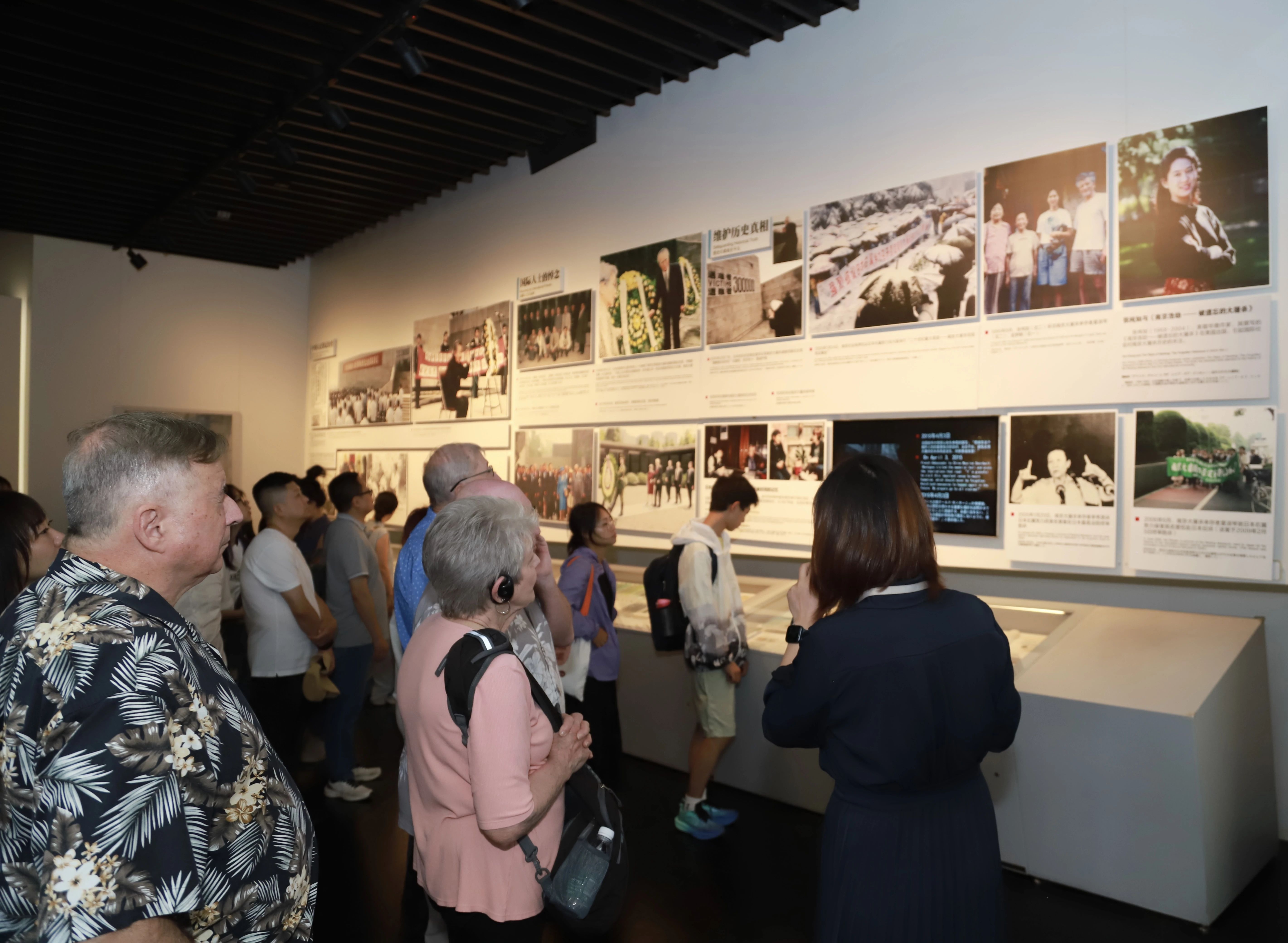 During their visit, the Flying Tigers delegation, led by an educational officer from the Memorial Hall, toured the Nanjing Massacre Exhibit. The delegation members solemnly examined each artifact, carefully verifying details with the educational officer. Upon seeing the tall, twisted gates of Nanjing, still bearing visible bullet holes, Jeffrey Greene, Chairman of the Sino-American Aviation Heritage Foundation, reached out to touch the scars of war on the city walls, lamenting the destruction inflicted on Nanjing.