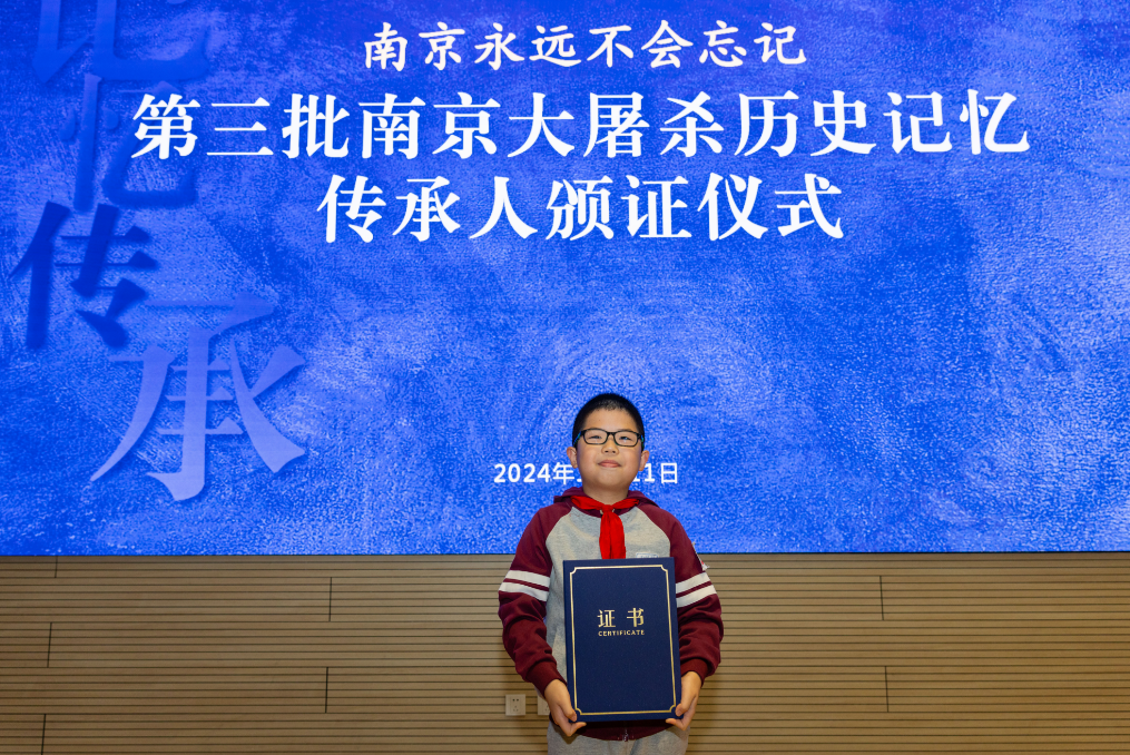 Nine-year-old Yu Tianxiang, a "post-00s generation" student, is the youngestinheritor in this batch. "I hope that my son will gain courage and responsibility and become a responsible person by participating in the historical memory inheritance activities. In the future, he will act as a young storyteller, sharing our family’s story with his classmates. He will also come to participate in volunteer activities at the Memorial Hall to call on more people at his age to remember history." Ren Ying said.