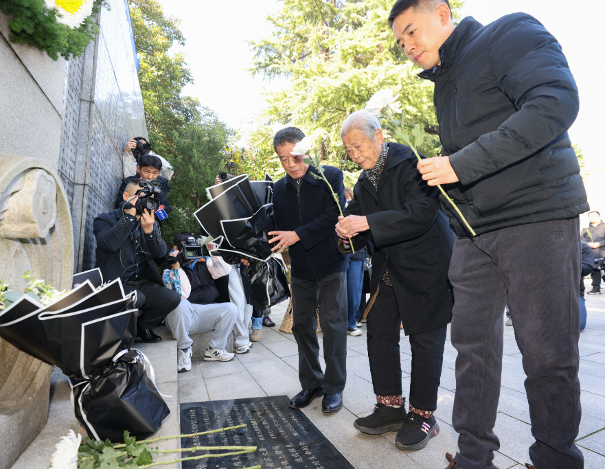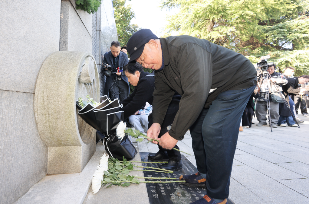 In these early days of winter, boundless grief filled the air in front of the "Wall of Tears". On December 1, the family memorial service for the Nanjing Massacre victims was held in front of the "Wall of Tears" at the Memorial Hall of the Nanjing Massacre Victims (by Japanese Invaders). Nanjing Massacre survivors, descendants of survivors, representatives of victims' families, and youth representatives stood solemnly with chrysanthemums to pay homage to their loved ones and compatriots who perished 87 years ago.