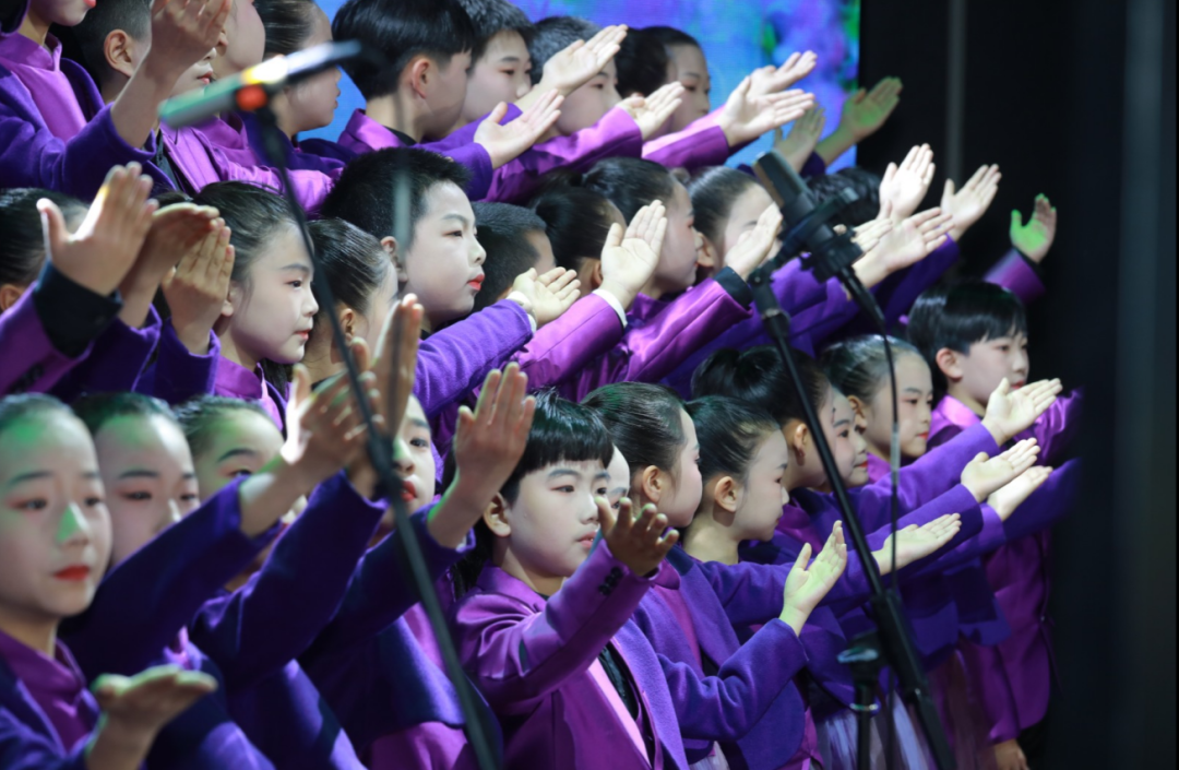 The children of the Nanjing Zijin Grass Children's Choir are dressed in purple gowns, their faces glowing with vibrant smiles, and their small hands gently swaying to the melody.With their clear voices and youthful energy, they perform songs like "Peace Blows Over Zijin Grass," "Red Dragonfly," and "The Peaceful Children's Song." Their singing is like the sunlight of spring, warm and full of hope.