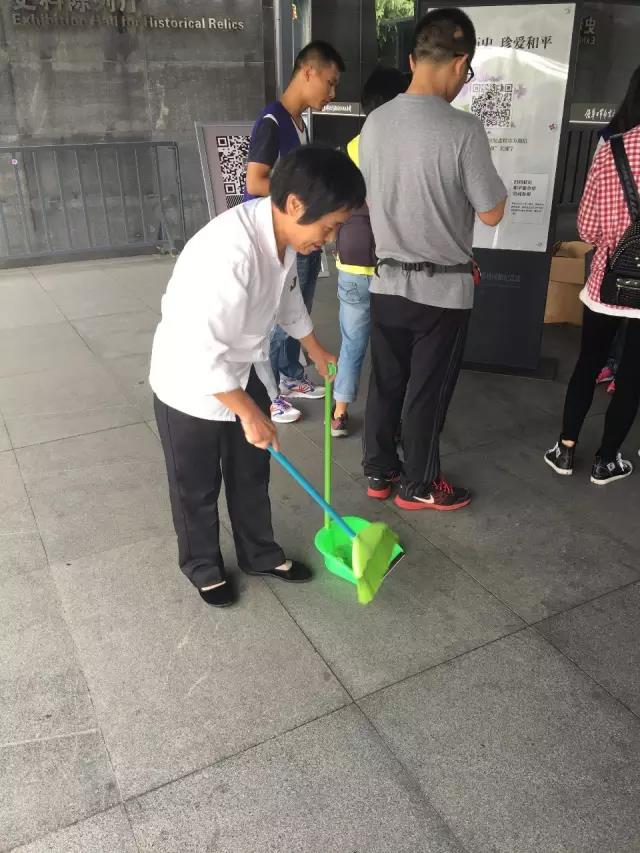 节假日期间人流量加大,但是纪念馆的地面在保洁阿姨的打扫下,依然干净整洁。