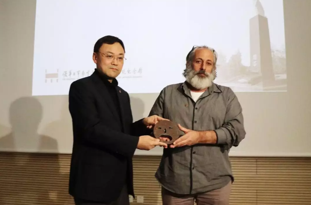 ▲张建军馆长向本·卡迪诗曼先生颁发收藏证书(蔡美婷摄)