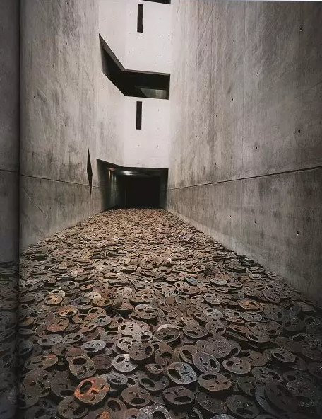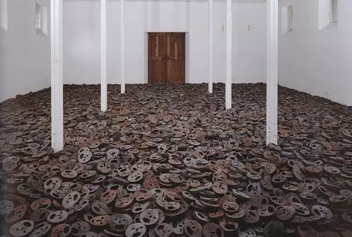 “秋之落叶”(Fallen Leaves)装置艺术目前在德国柏林犹太人纪念馆展出,它由一万多个张着嘴、睁着眼、面部狰狞的铁片“金属脸”组成。走在这条铺满铁片“金属脸”的路上,脚下会发出呐喊一样的回响,让人感到那些如秋日落叶般陨落的生命。