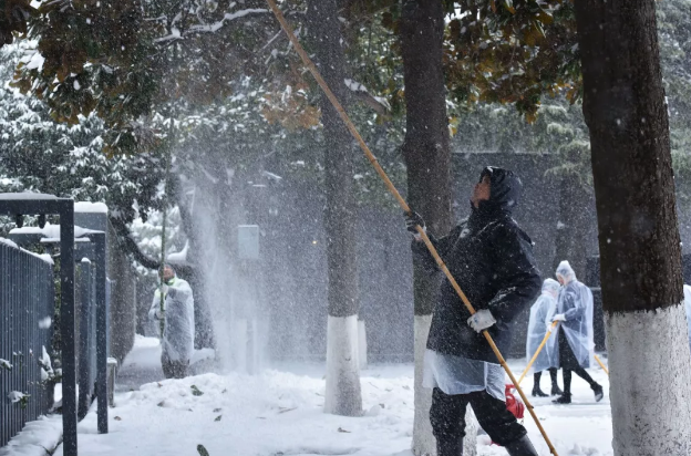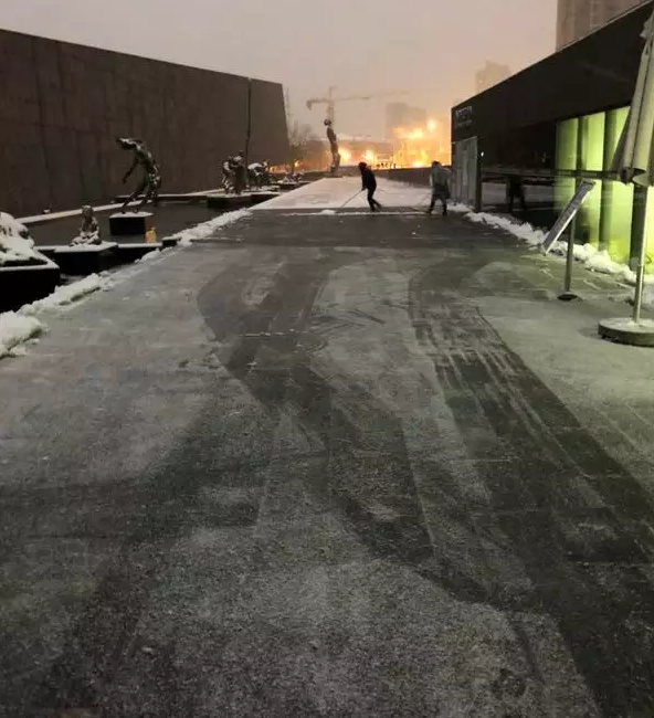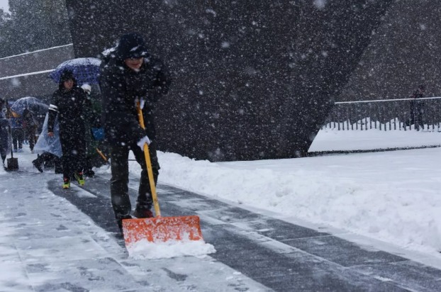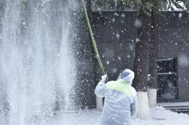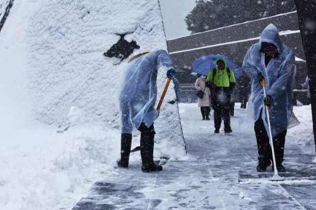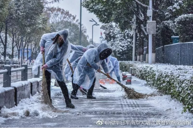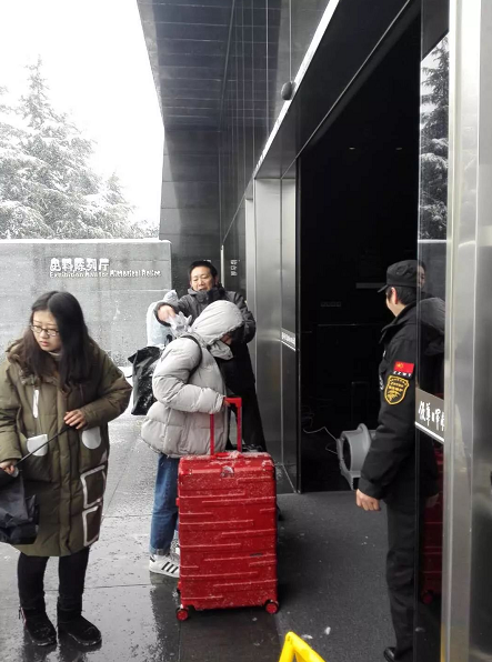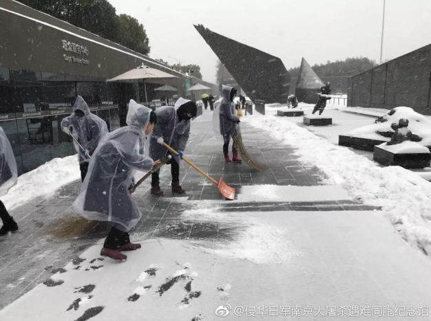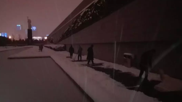 为保障参观者出行安全,纪念馆人连续多天,每天早晨6点多,就赶到纪念馆,开启“不间断扫雪模式”,确保观众通道和11个大门门前三包的安全顺畅。