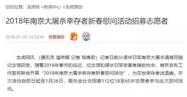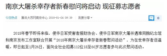 用你的善意,温暖南京大屠杀幸存者的冬天……