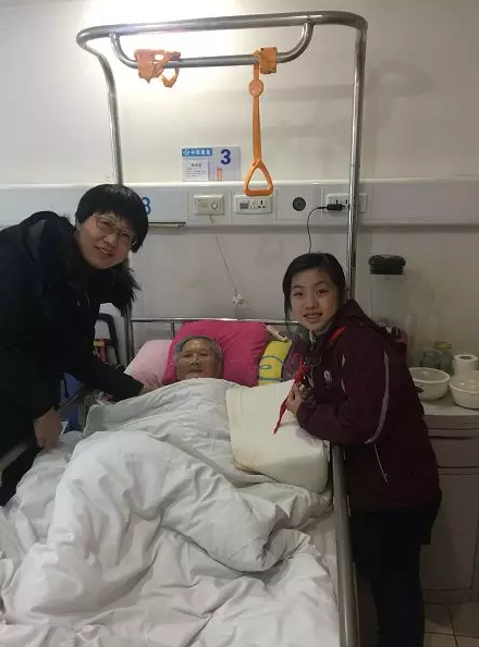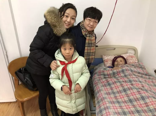 监狱民警殷筱霞带着孩子去医院慰问杨秀英老人