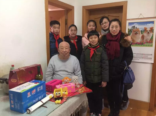 纪念馆馆长张建军和志愿者们前往葛道荣老人家中慰问,葛老今年已经92岁,但依然精神矍铄。张建军馆长说:“看到您身体好,我们就放心了!我们会经常来看您,祝福您健康长寿!”