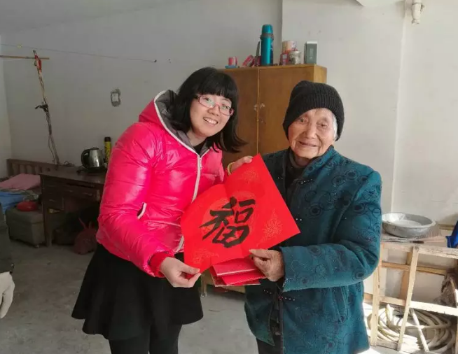 监狱民警张淼去年就参加了新春慰问幸存者活动,当时她慰问了王秀英老人。昨天,她再次上门慰问王秀英老人。