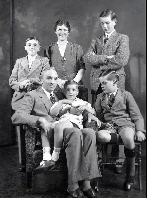马吉全家合影,约翰·马吉(前排左一),约翰·吉莱斯皮·马吉(后排右一)