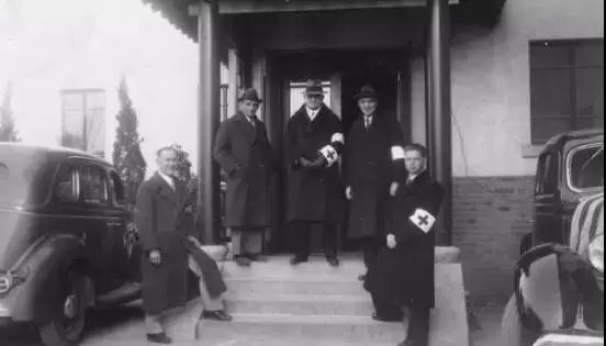 南京安全区国际委员会成员合影,右二为约翰·马吉,中为约翰·拉贝