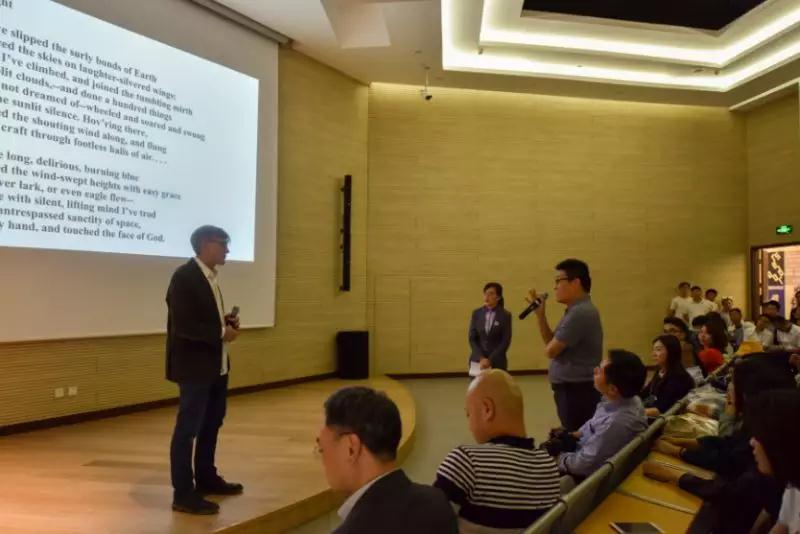 紫金草和平讲堂现场,有观众提问:“《高高飞翔》这首诗给您带来什么影响?”