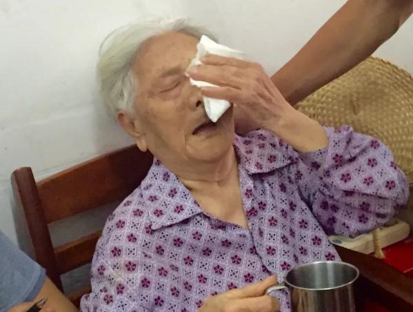 彭竹英老人抹泪诉说过往的伤痛