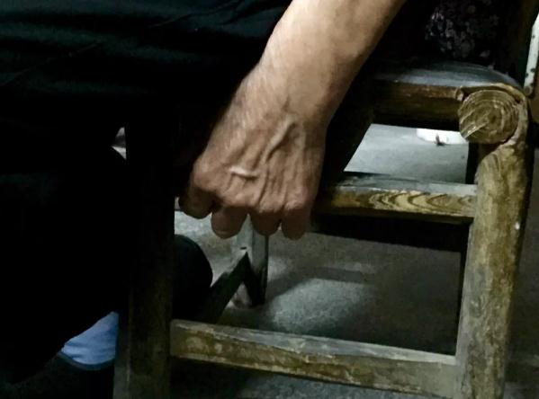 叙述时双手一直紧紧攥着椅子腿的彭竹英老人
