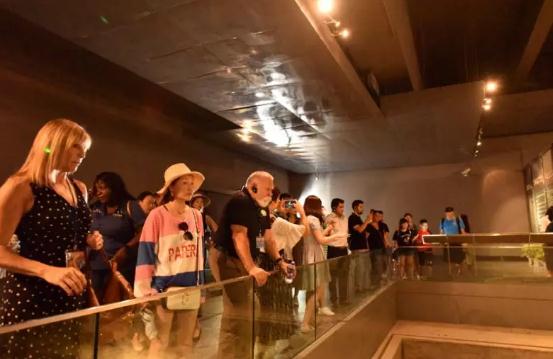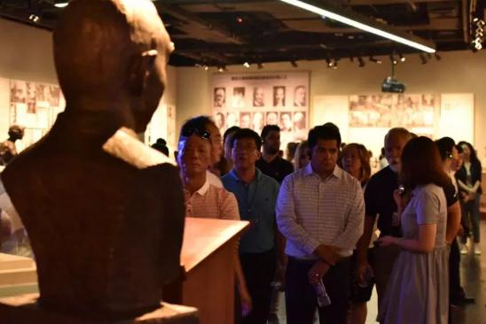 他们参观得特别认真,尤其在国际救助和西方媒体报道板块看得最仔细,还时不时向讲解员提问,侧耳倾听翻译讲解。