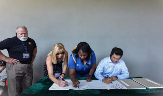 美国联邦众议员、团长吉米·戈麦兹(上图右一):