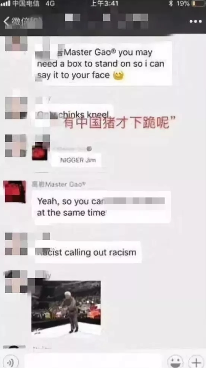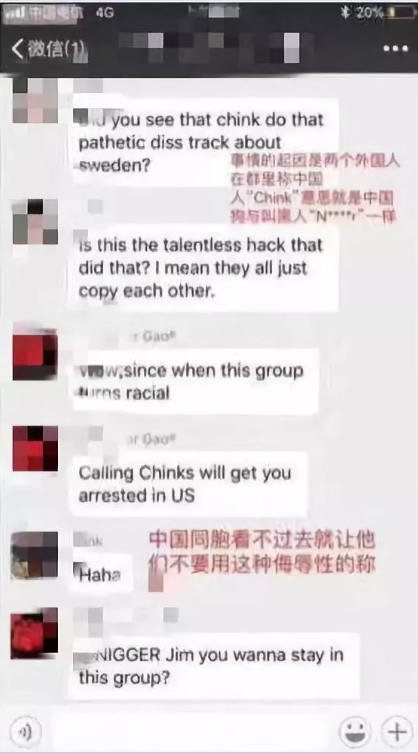 记者联系到群里另一位中国人,他也在事情发生时和当事外国人发生口角。这位先生告诉记者,自己28日下午发朋友圈讲述事情经过后,当事外国人盯上了他,对他语言侮辱,并且爆出了他的地址恐吓其人身安全,而这两名外国人中,其中一名还曾经做过外教。