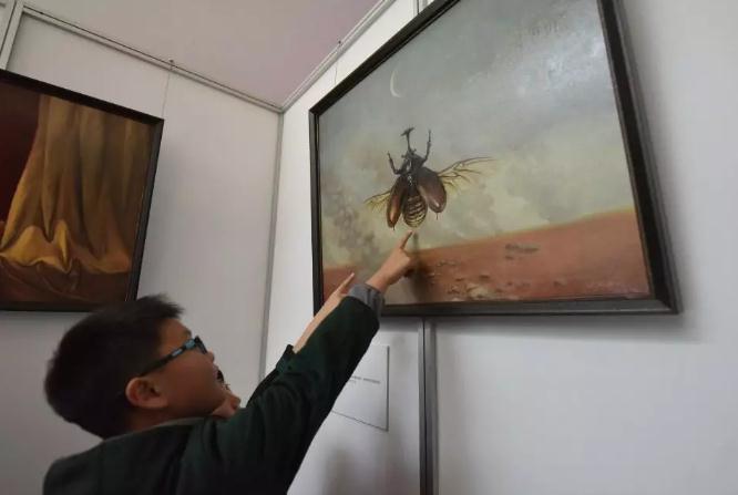 今天,“云上日出”主题系列油画展在我馆“三个必胜”展厅出口处正式开展。展览还展出数十幅由小学生创作的绘画作品,孩子用手中的画笔表达和平心愿。