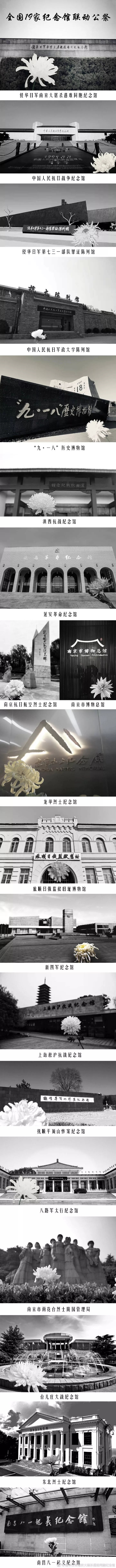 12月13日,中国人民抗日战争纪念馆、沈阳“九·一八”历史博物馆、旅顺日俄监狱旧址博物馆、八路军太行纪念馆、抚顺平顶山惨案纪念馆、抚顺战犯管理所旧址陈列馆、东北烈士纪念馆、侵华日军第七三一部队罪证陈列馆、上海淞沪抗战纪念馆、盐城新四军纪念馆、抗日军政大学陈列馆、浙江革命烈士纪念馆、福建省革命历史纪念馆、鄂豫皖革命纪念馆、延安革命纪念馆、台儿庄大战纪念馆、抗日军政大学纪念馆、冀鲁豫边区革命纪念馆、中国人民抗日战争胜利受降纪念馆、广东东江纵队纪念馆、滇西抗战纪念馆、武汉中共中央机关旧址纪念馆、南京航空烈士纪念馆、拉贝与国际安全区纪念馆等全国抗战类纪念(博物)馆,响应中国纪念馆专委会的倡议,同步举行公祭活动。