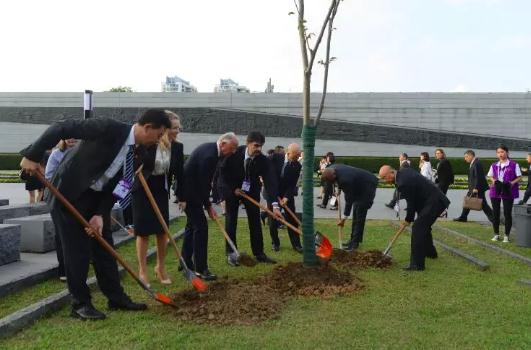 悼念遇难者、按下和平手印、种下和平树……