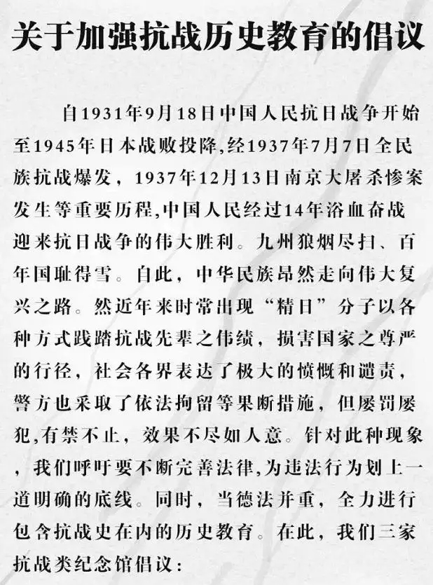 一起发出倡议:加强抗战历史教育,