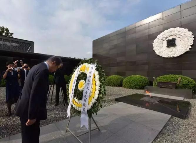 向南京大屠杀死难者敬献花圈、默哀,