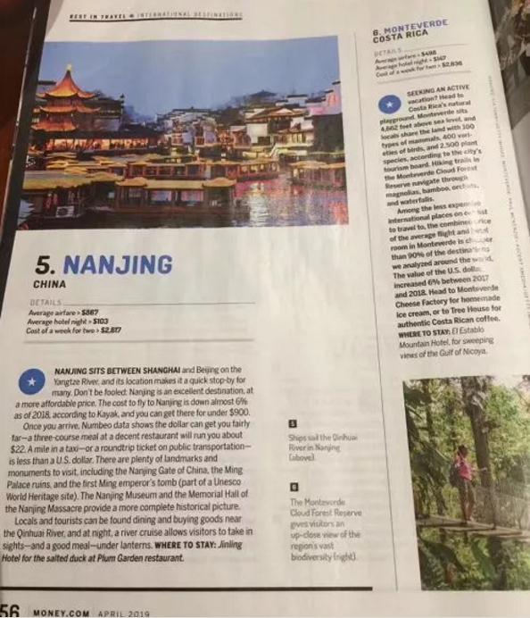 近日,在美国著名杂志《Money》中,南京成功入围2019年度全球最佳旅游目的地,全球只有20座城市上榜,其中包括10个美国本土目的地和10个国际目的地,南京在10个国际目的地中名列第五名,是唯一被推荐的大陆城市!我馆还被该杂志评为“美国游客推荐必去的南京参观地”之一!