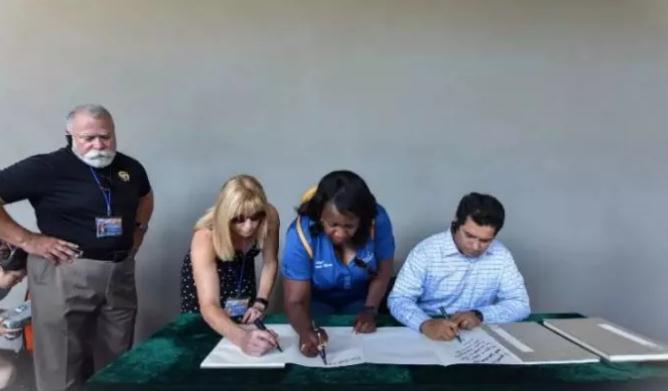 美国联邦众议员、团长吉米·戈麦兹(上图右一)参观后说: