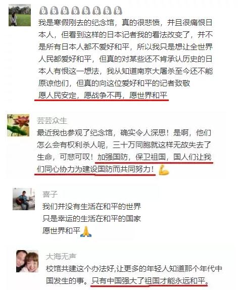 希望日本政府敢于承认历史,而不是掩盖。也希望更多人正确认识历史,而不是记仇,抵制日本一切。我们痛恨日本军国主义,而不应是日本平民。愿我们理智对待,为祖国奉献,维护世界和平!