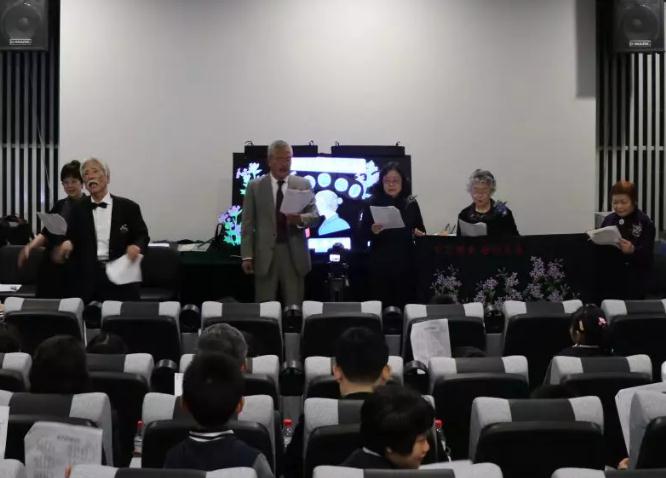 演出结尾,日本紫金草合唱团成员,带领现场的大、小观众,一同唱起了《和平的花紫金草》。