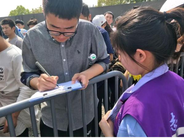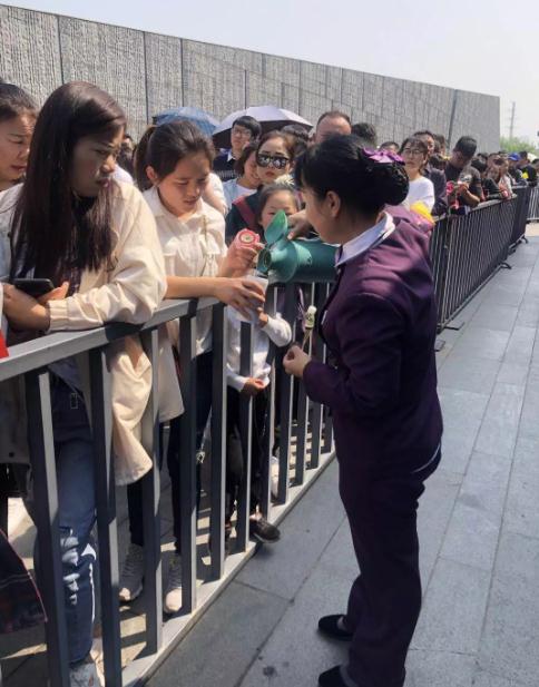 4月6日,室外温度达到22度,我馆客服人员王云梦给排队等待的观众免费续开水