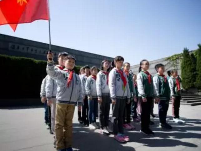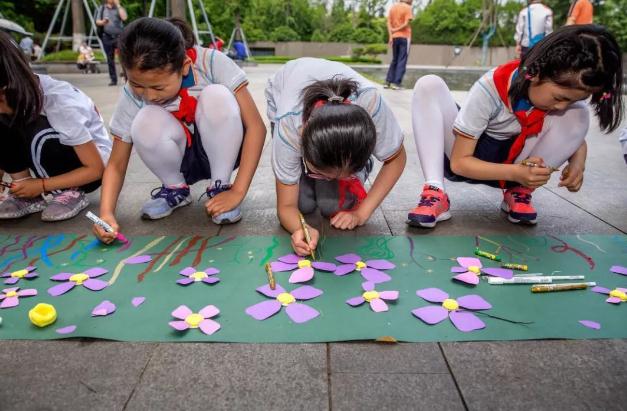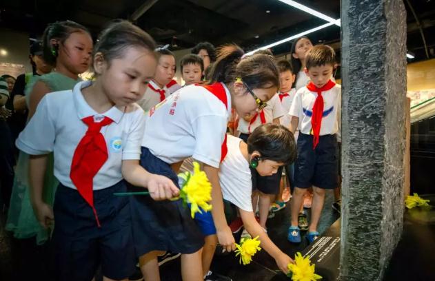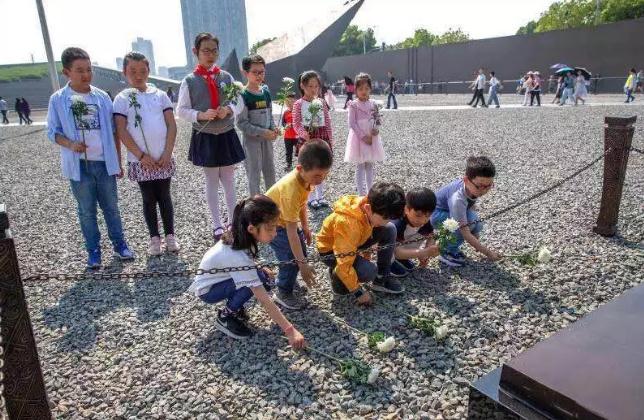 组织孩子们参加升旗仪式,向南京大屠杀遇难同胞默哀、献花,撞响和平大钟。通过小小的仪式感,让爱国之情在孩子心中萌芽。