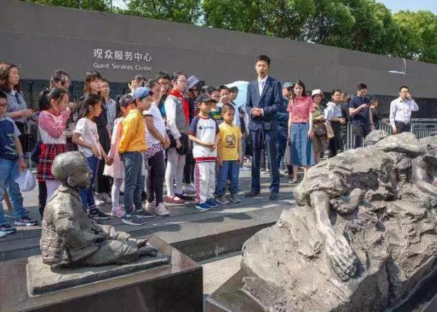 讲解员带领孩子们参观《南京大屠杀史实展》、纪念馆雕塑广场、悼念广场等地。