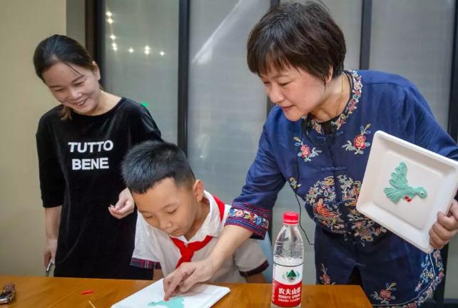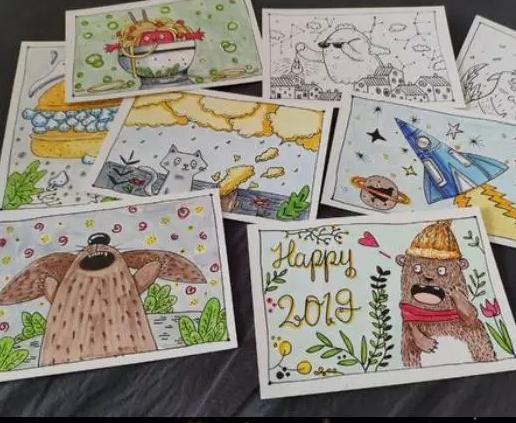 爸爸妈妈和孩子们一起做手工、写贺卡、绘画……