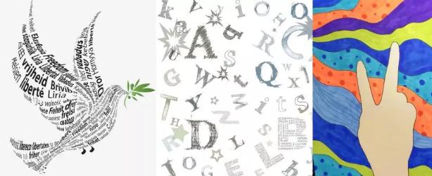 书写、勾勒、创意、上色,孩子们发挥想象力,独立创作、精心构图,把心目中的“ 和平”呈现在画纸上。