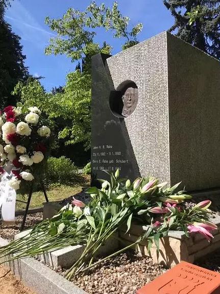 1950年1月拉贝逝世后,他的亲人将他安葬在柏林西郊的威廉皇帝纪念教堂墓园。因德国方面对墓地使用有期限,到1985年,拉贝墓地占用时限已逾期。