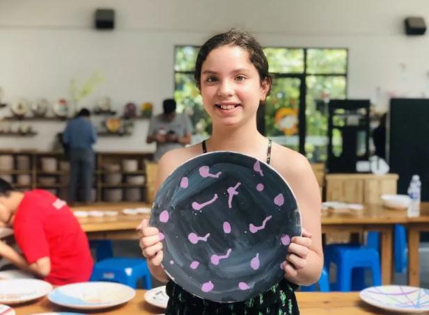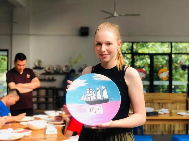 下午,在高淳陶瓷陶艺苑,国际友人的后代,在老师指导下,亲手制作和平主题的陶瓷工艺品。有的在手绘釉下彩, 有的在手工制作拉坯。