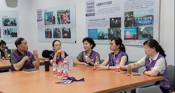 志愿者讲解员在休息室交流工作