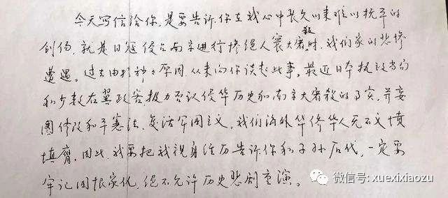 今天写信给你,是要告诉你在我心中长久以来难以抚平的创伤,就是日寇侵占南京进行惨绝人寰大屠杀时,我们家的悲惨遭遇。过去由于种种原因从未向你谈起此事,最近日本执政当局和少数右翼政客极力否认侵华历史和南京大屠杀的事实,并妄图修改和平宪法,复活军国主义,我们海外华侨华人无不义愤填膺。因此,我要把我亲身经历告诉你和子孙后代,一定要牢记国恨家仇,绝不允许历史悲剧重演。