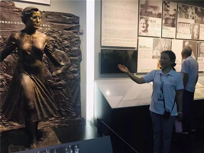 她负责讲解国际友人魏特琳、约翰?马吉的事迹。每10分钟一讲,两次讲解中间仅停留两分钟休息时间。她饱含深情,讲着讲着,眼眶都湿润了。她说,特别为这些国际友人所感动:“他们当年为中国人服务,付出太多。我很敬佩他们!”