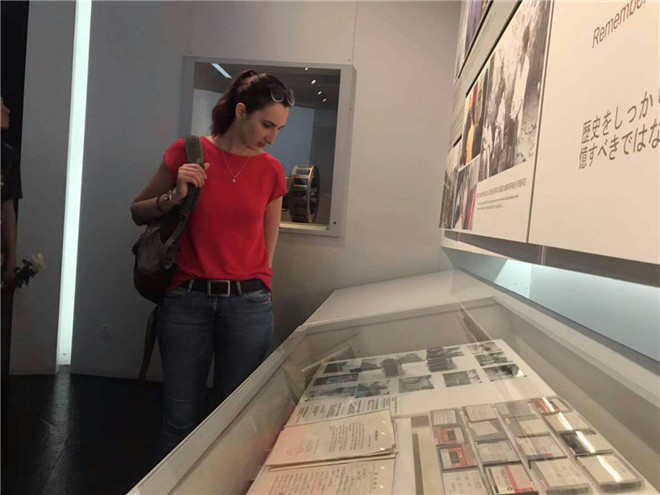格鲁吉亚姑娘Aliona15日下午来到纪念馆。参观后,她表示,“心里很难过,一言难尽。”Aliona说,她喜欢中国文化,学过汉语,来之前就了解南京大屠杀历史,但即便如此,进入展厅参观,看到那么多文物和图片,还是感觉很震惊,“太悲惨了,我没有办法形容。希望人类永远和平相处!”