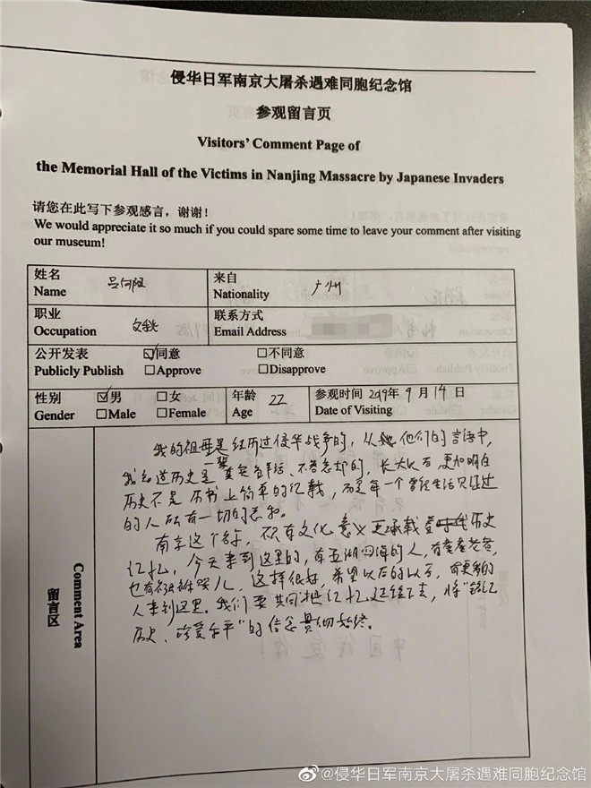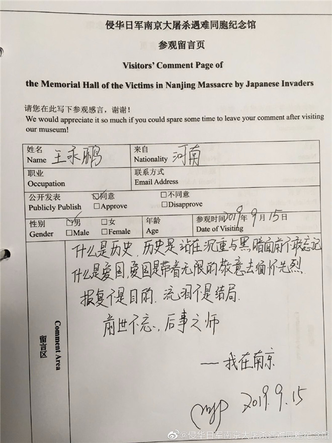 参观完《南京大屠杀史实展》,他们表示:“希望这样悲痛的历史不要再发生!和平对于世界上每个国家来说,都是弥足珍贵的。只有和平才能发展!”