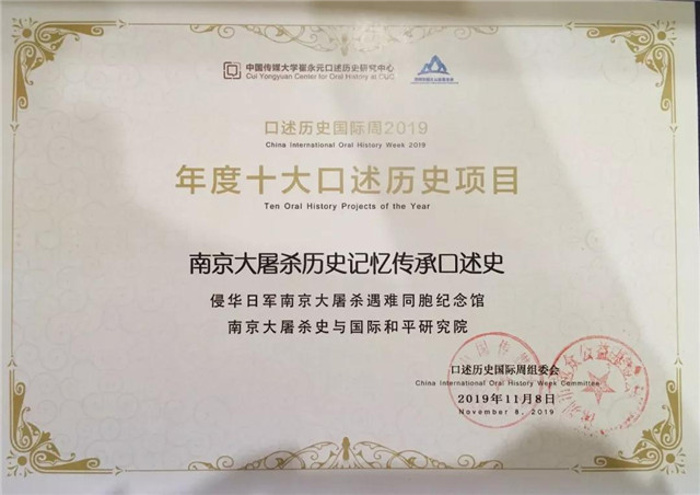 口述历史之夜 | 南京大屠杀历史记忆传承口述史获“年度十大口述历史项目”奖!
